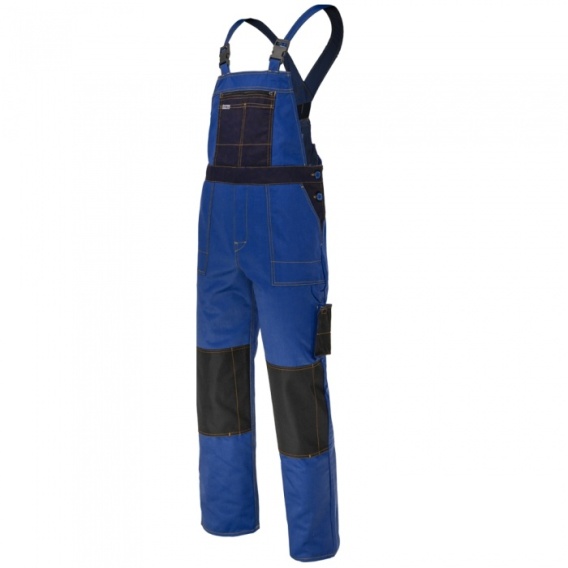 >ROZMIAR 48<</h2>Spodnie ochronne, typu ogrodniczki, wykonane z tkaniny poliestrowo - bawełnianej (65% poliestru i 35% bawełny) o gramaturze 290 g/m2.Charakterystyka:zapinane z boku na guziki, z regulacją szerokość pasa,szelki z gumą i plastikowymi klamrami,3 kieszenie na klatce piersiowej, w tym jedna zapinana na suwak,2 kieszenie boczne poniżej pasa,kieszenie kolanowe, wzmocnione materiałem typu Oxford 600D, umożliwiające włożenie ochraniaczy na kolana,kieszeń na metrówkę na nogawce,rozporek zapinany na guziki,podwójne szwy oraz ryglówki wzmacniające dodatkowo miejsca szczególnie narażone na rozerwanie,bardzo niska kurczliwość, nawet po wielokrotnym praniu,stabilność koloru.Wygodne, niekrępujące ruchów, wykonane z wytrzymałych materiałów.CE Kat.I EN ISO 13688:2013 - opakowanie zbiorcze 1/20