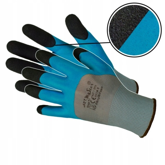 - ✅ powlekane spienionym lateksem o gładkiej fakturze w kolorze niebieskiem na 3/4 rękawicy,